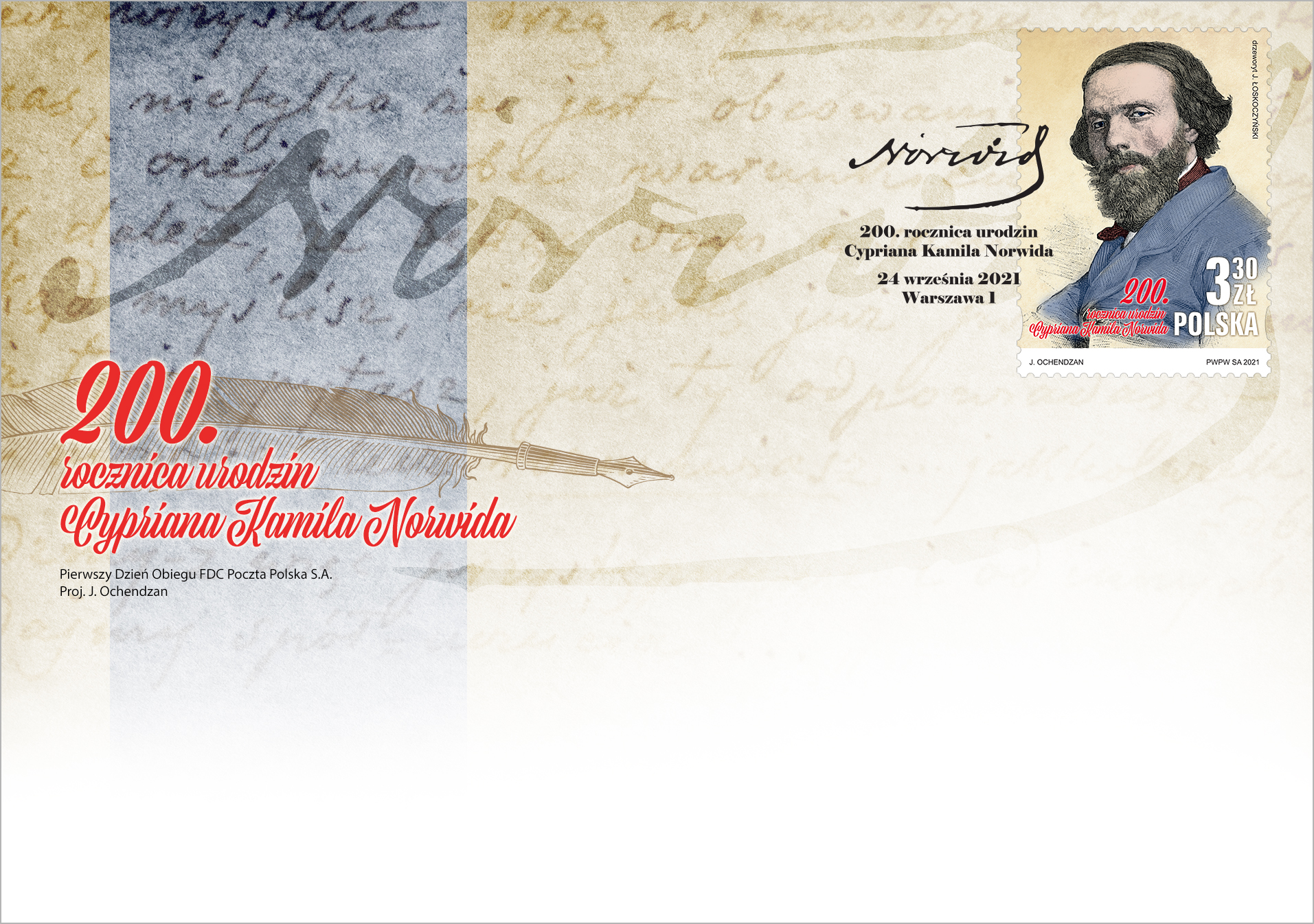 Przypominamy na znaczku postać wielkiego Cypriana Kamila Norwida