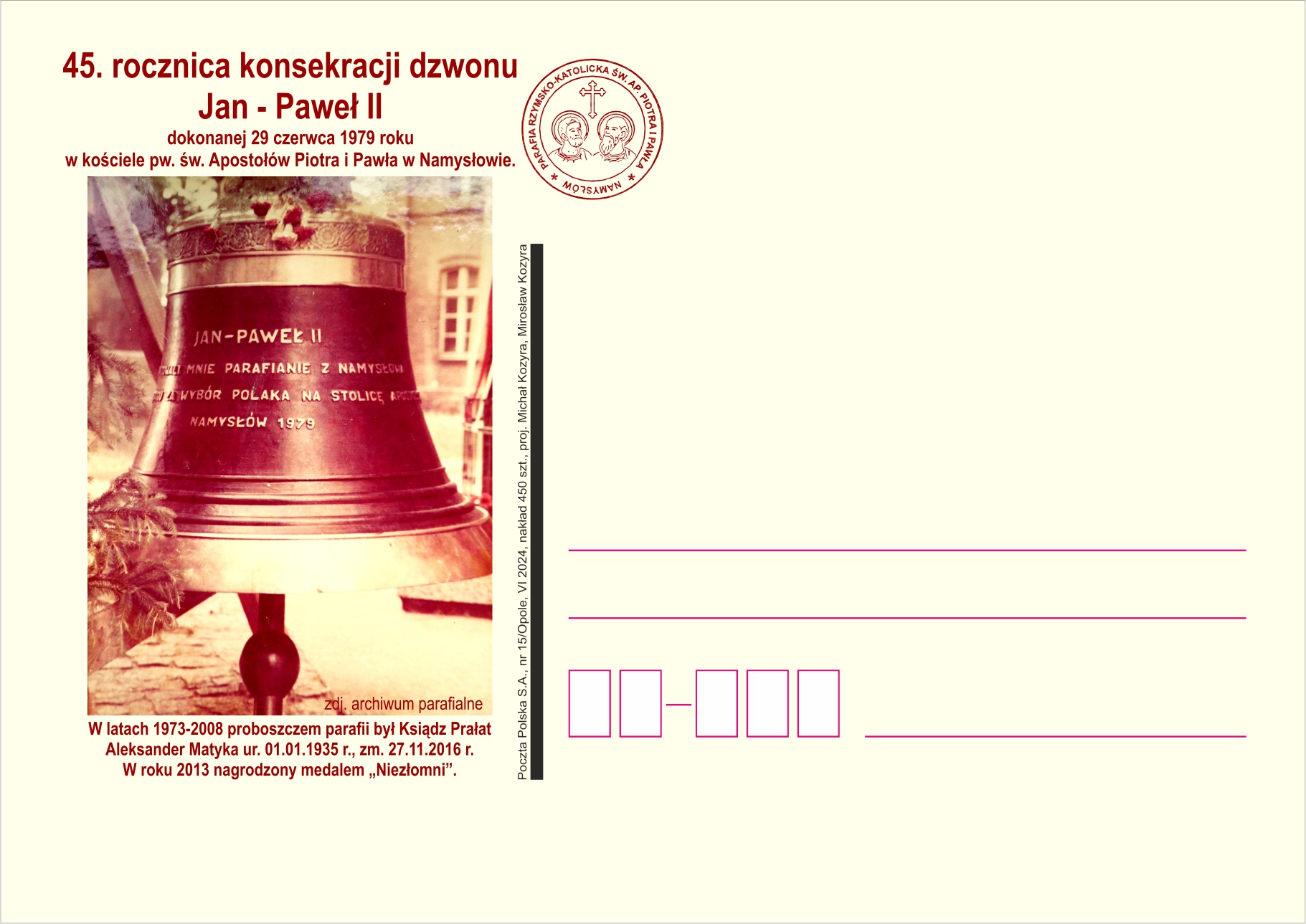 45th anniversary of the consecration of the John Paul II bell on June 29, 1979, in the Church of St. Peter and Paul in Namysłów