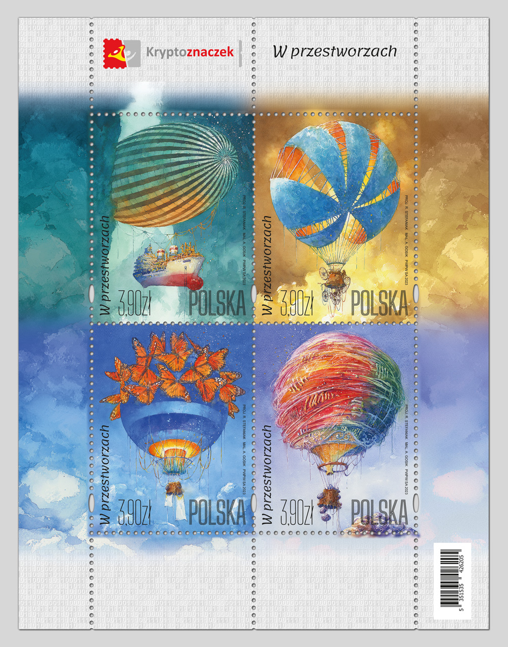Emisja „W przestworzach” stanowi najnowszą główną kolekcję Polskiego Kryptoznaczka, oznaczoną numerem 2.0. Prezentuje ona surrealistyczne obrazy balonów autorstwa cenionego artysty Andrzeja Gosika, który jest zarówno malarzem, ilustratorem, jak i autorem akwareli. Kompozycje są pełne baśniowych odwołań, mają charakter zagadkowy, a dominuje w nich niezwykły język form. Istotnym elementem tego stylu jest właśnie niejednoznaczność, która pobudza do głębszej refleksji i własnych interpretacji. Całość zbioru dzieł sztuki Gosika zaprezentowano w 2022 roku na wystawie zorganizowanej w Zamku-Muzeum w Łańcucie, co stanowiło wyraz uznania dla Jana Potockiego – pierwszego Polaka, który odbył podróż balonem w 1790 roku.