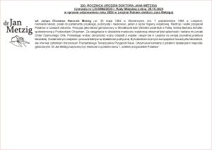 220. rocznica urodzin dr Jan Metzig (1804-1868)