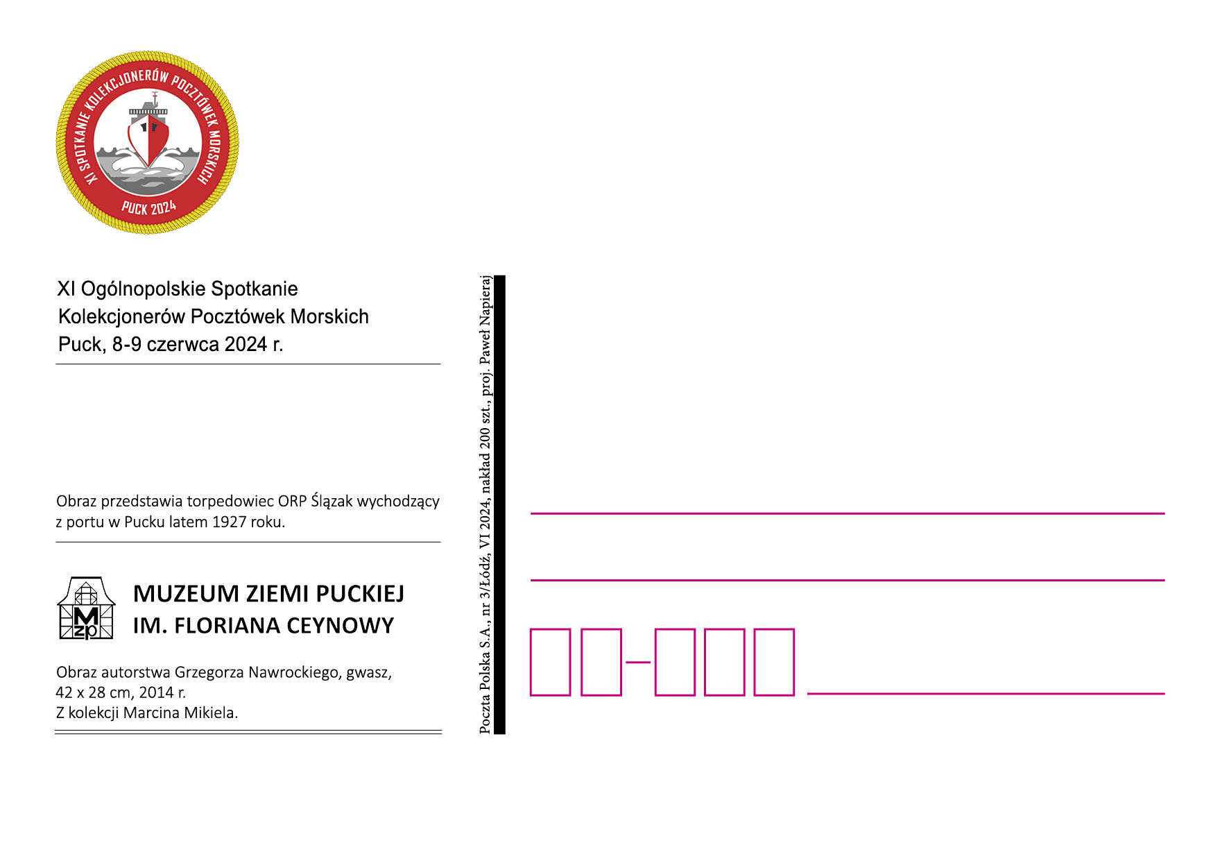 XI Ogólnopolskie Spotkanie Kolekcjonerów Pocztówek Morskich Puck, 8-9 czerwca 2024 r.